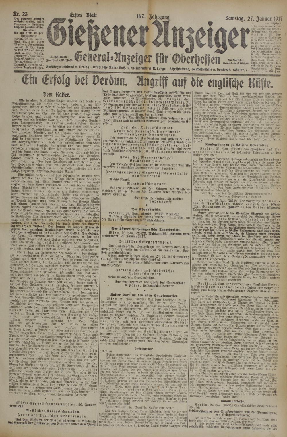 (27.1.1917) Erstes Blatt