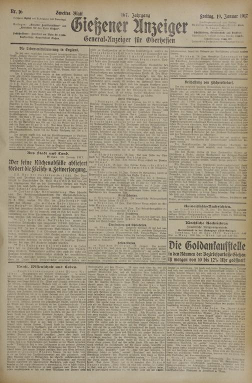 Regionale Zeitungen aus der Zeit des Ersten Weltkrieges