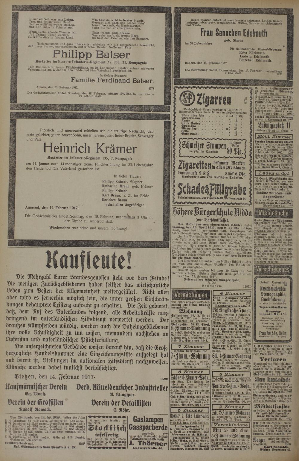 (14.2.1917) Erstes Blatt