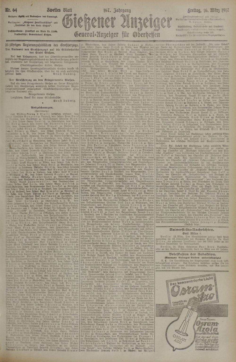 Regionale Zeitungen aus der Zeit des Ersten Weltkrieges