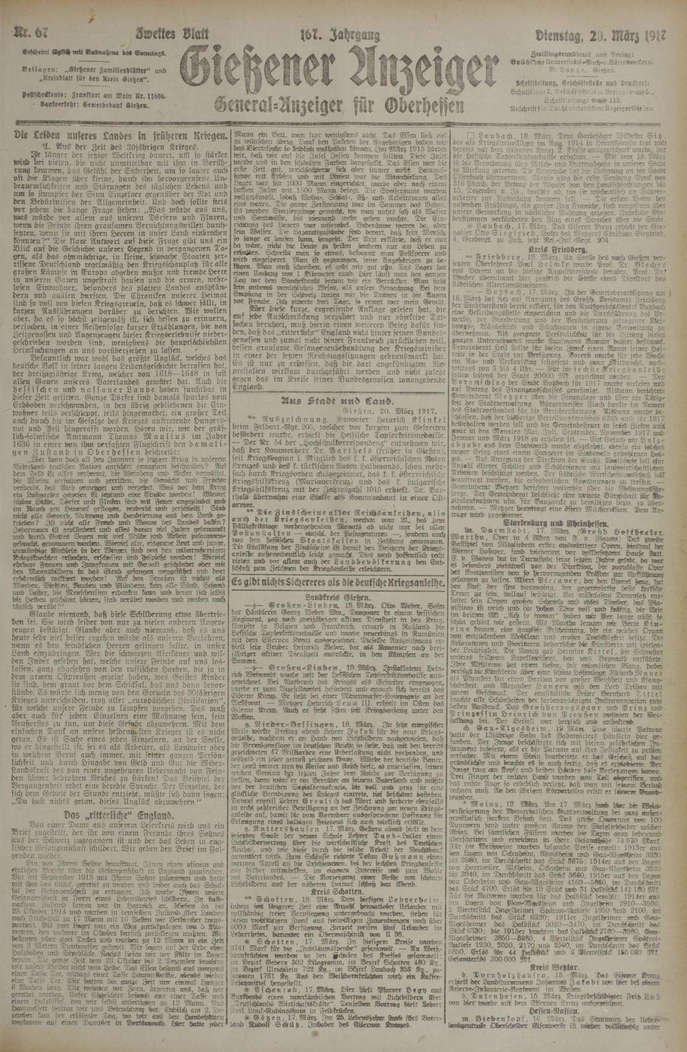 Regionale Zeitungen aus der Zeit des Ersten Weltkrieges