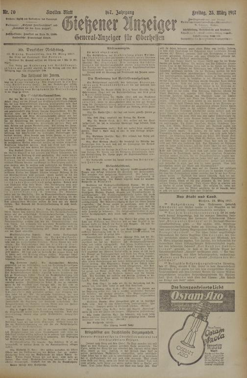 Regionale Zeitungen aus der Zeit des Ersten Weltkrieges