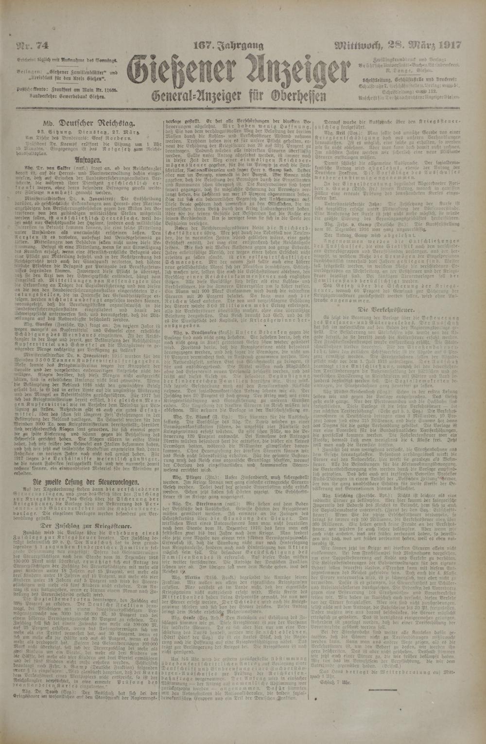 Gießener Anzeiger. 1868-1943