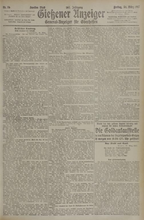 Regionale Zeitungen aus der Zeit des Ersten Weltkrieges