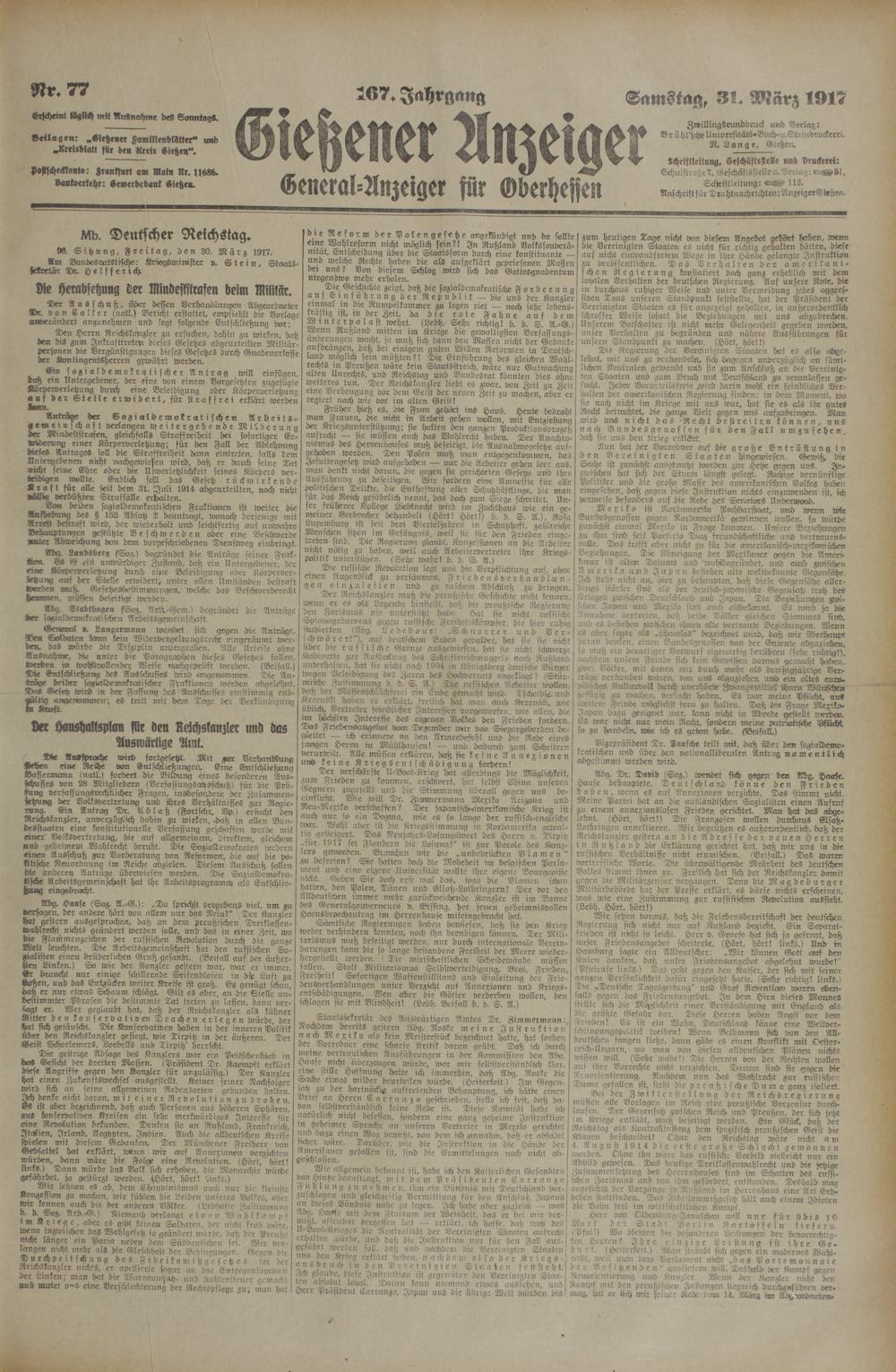 Gießener Anzeiger. 1868-1943