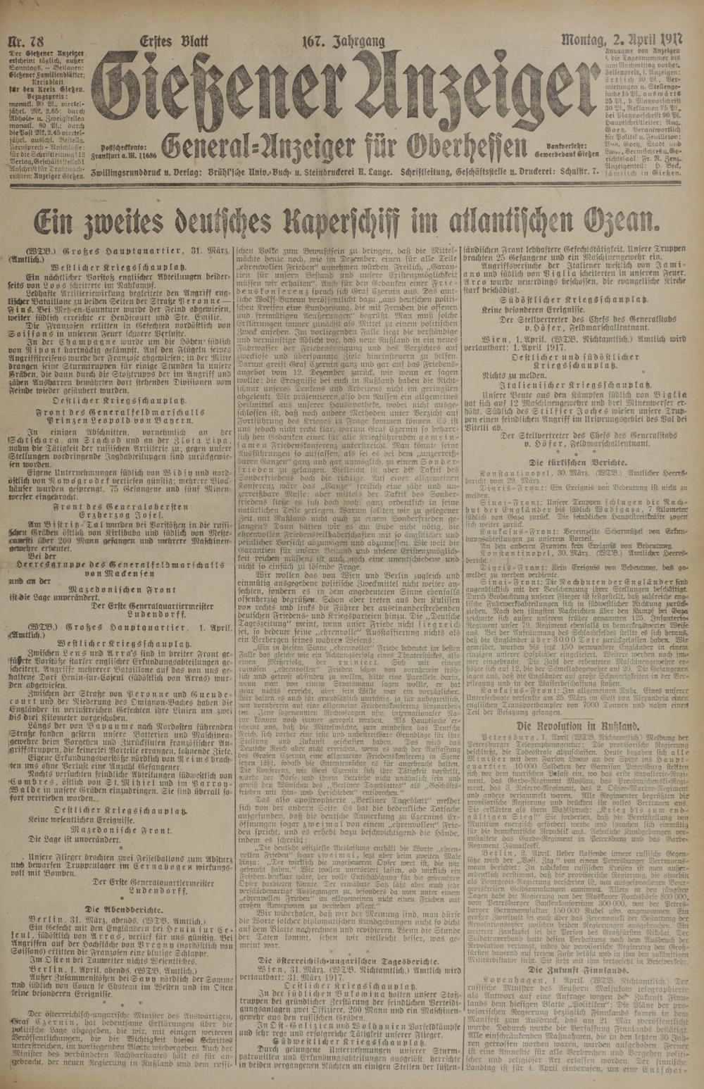 Regionale Zeitungen aus der Zeit des Ersten Weltkrieges