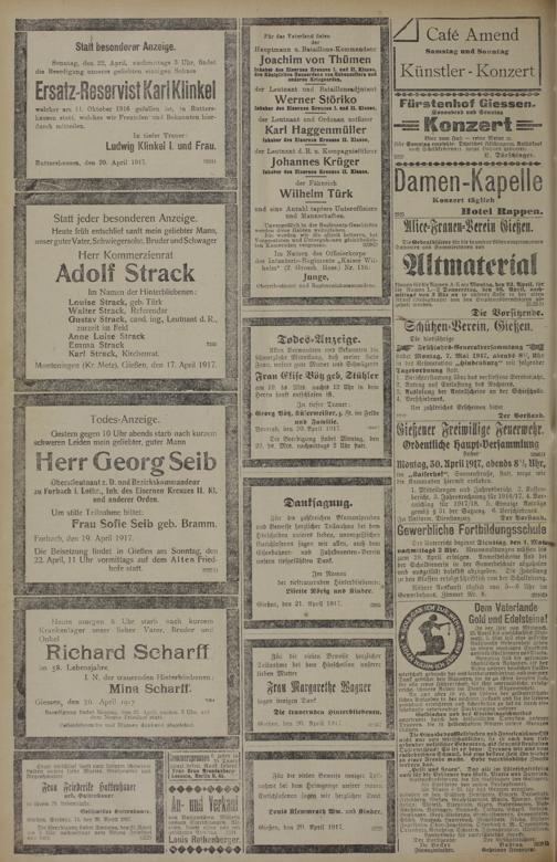 Regionale Zeitungen aus der Zeit des Ersten Weltkrieges