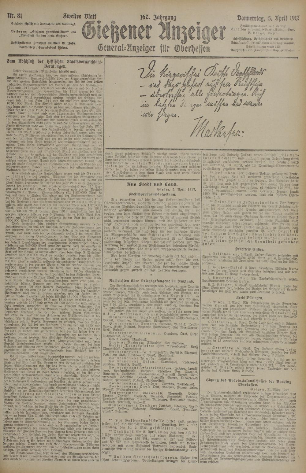 Regionale Zeitungen aus der Zeit des Ersten Weltkrieges