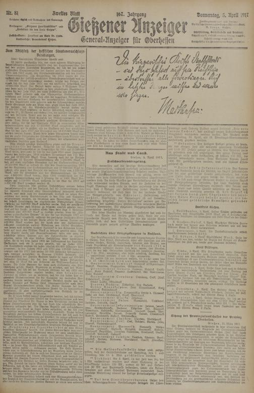 Der Erste Weltkrieg im Spiegel hessischer Regionalzeitungen