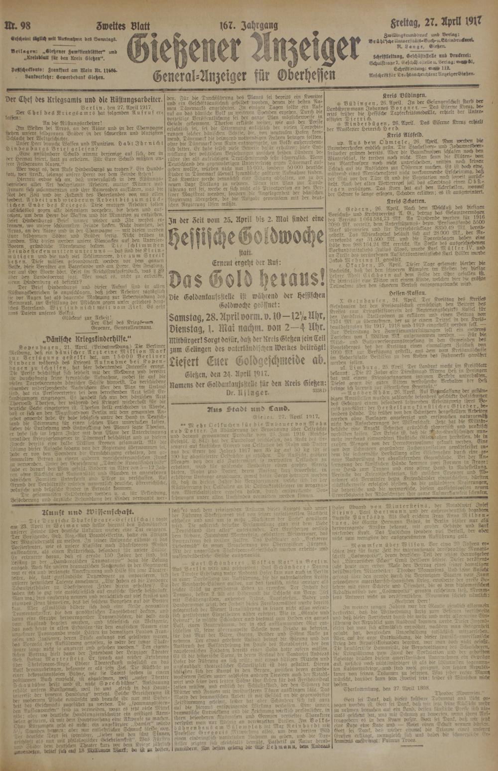 Gießener Anzeiger. 1868-1943