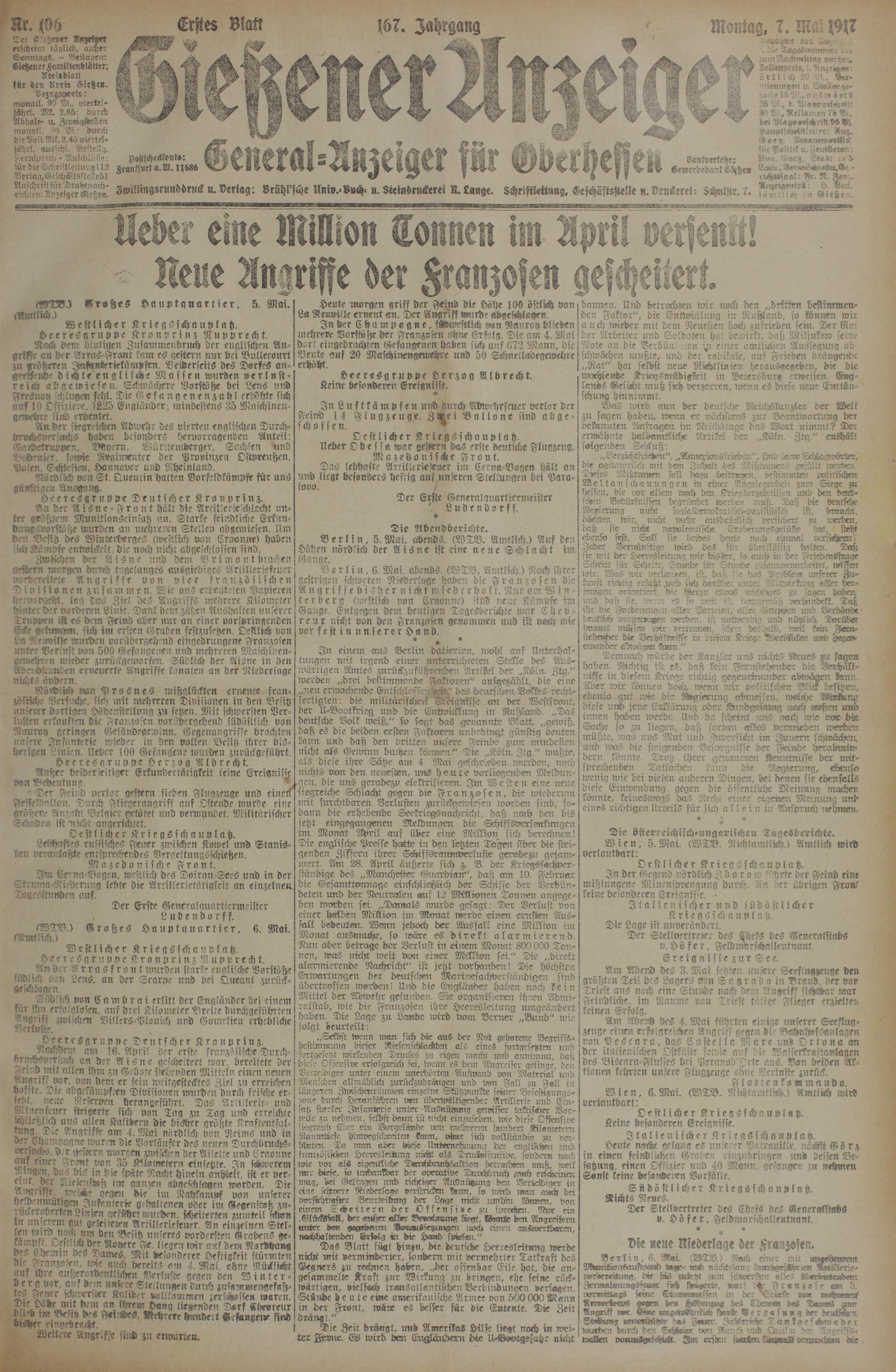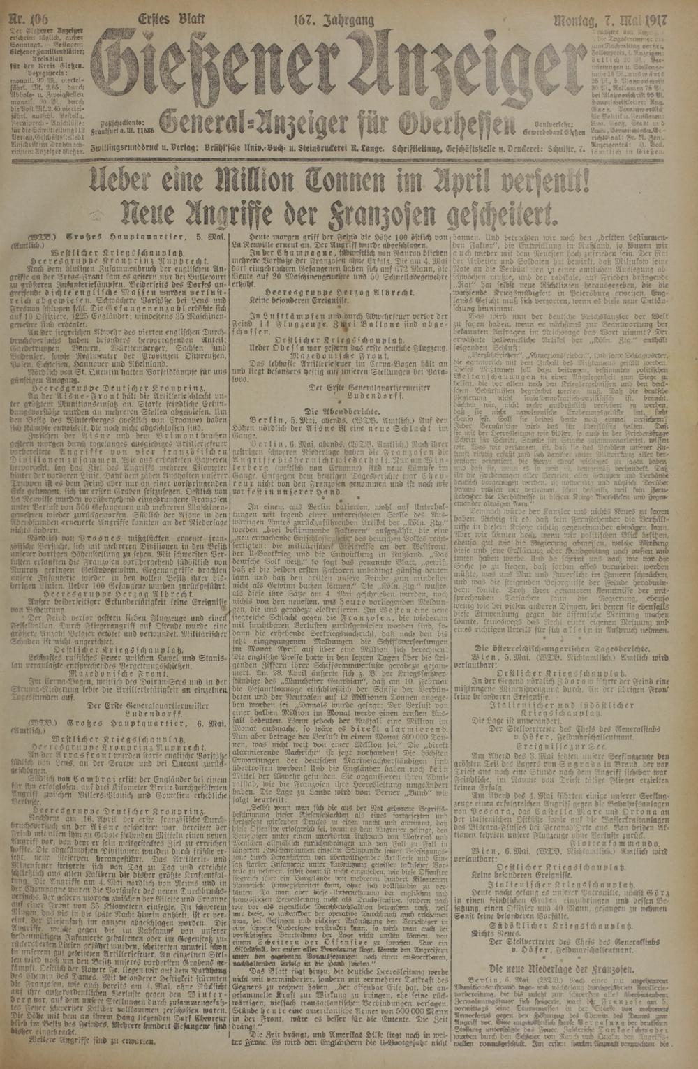 Gießener Anzeiger. 1868-1943