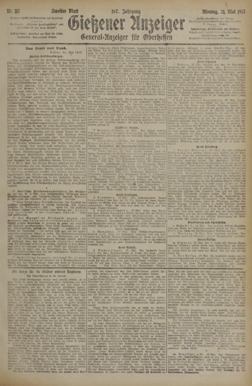 Regionale Zeitungen aus der Zeit des Ersten Weltkrieges