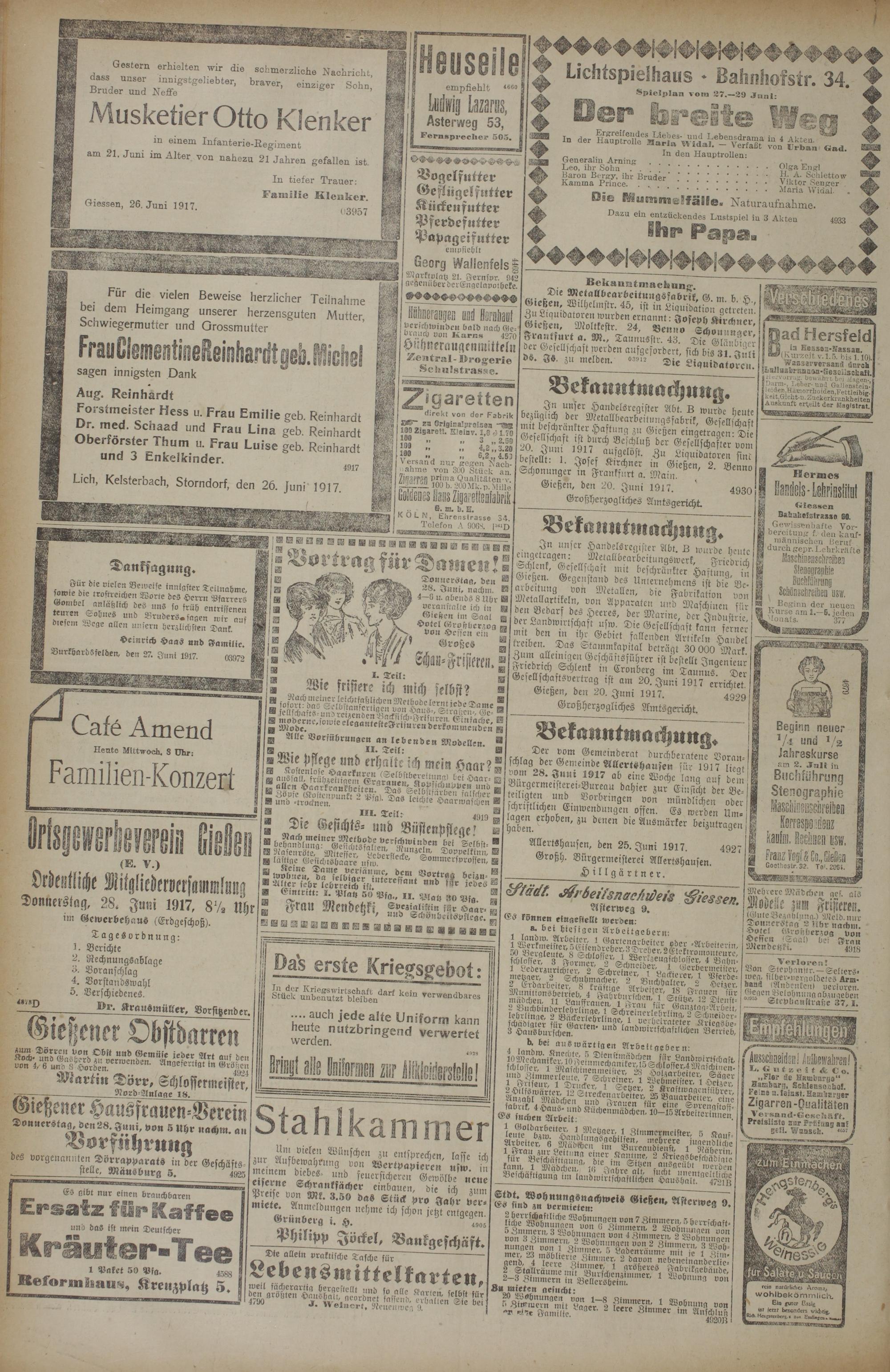 (27.6.1917) Erstes Blatt