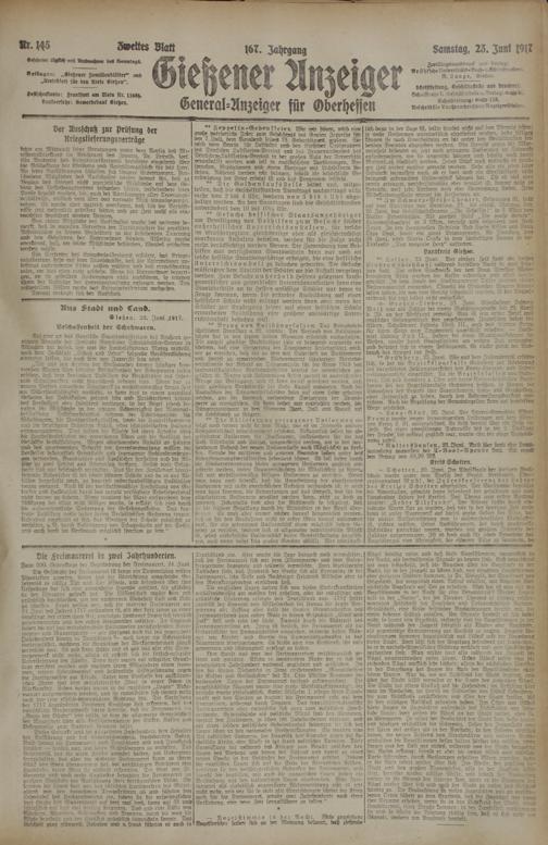 Regionale Zeitungen aus der Zeit des Ersten Weltkrieges