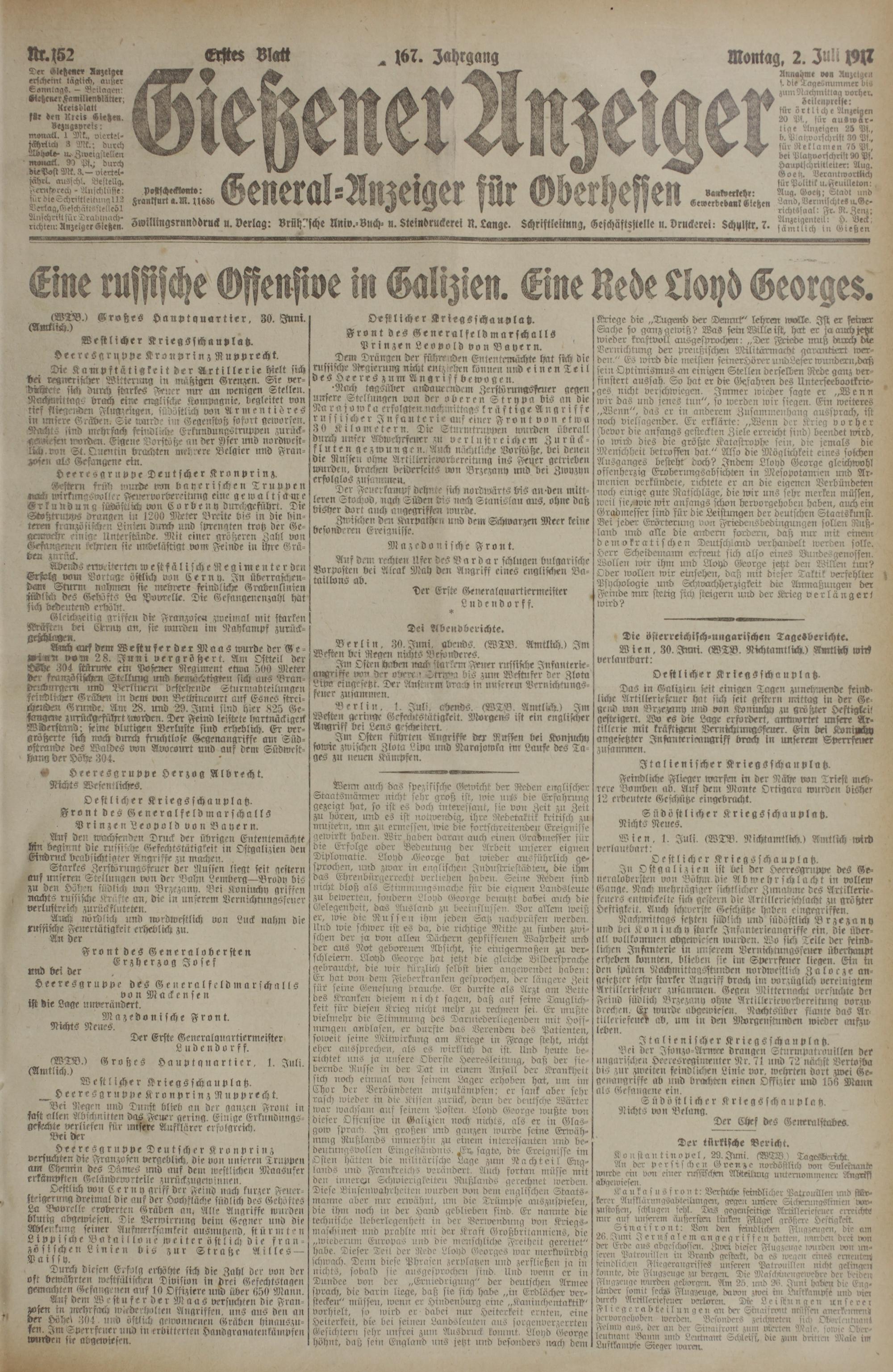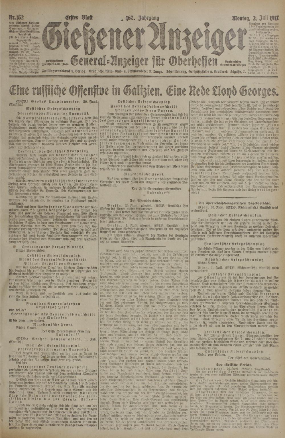 (2.7.1917) Erstes Blatt