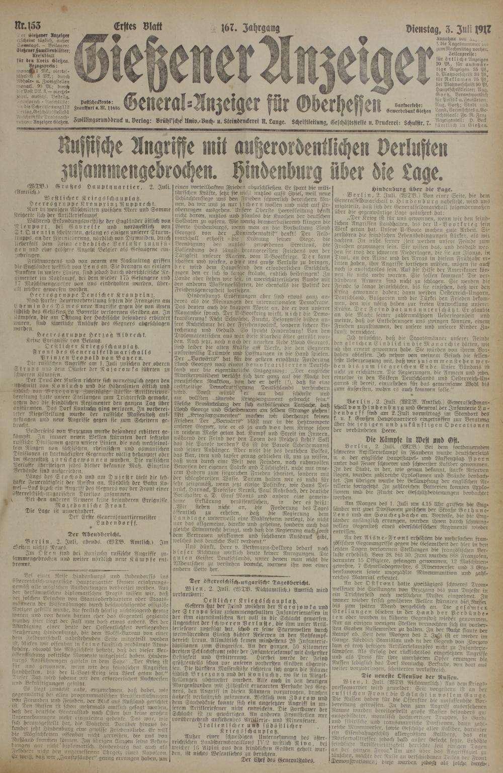 Der Erste Weltkrieg im Spiegel hessischer Regionalzeitungen