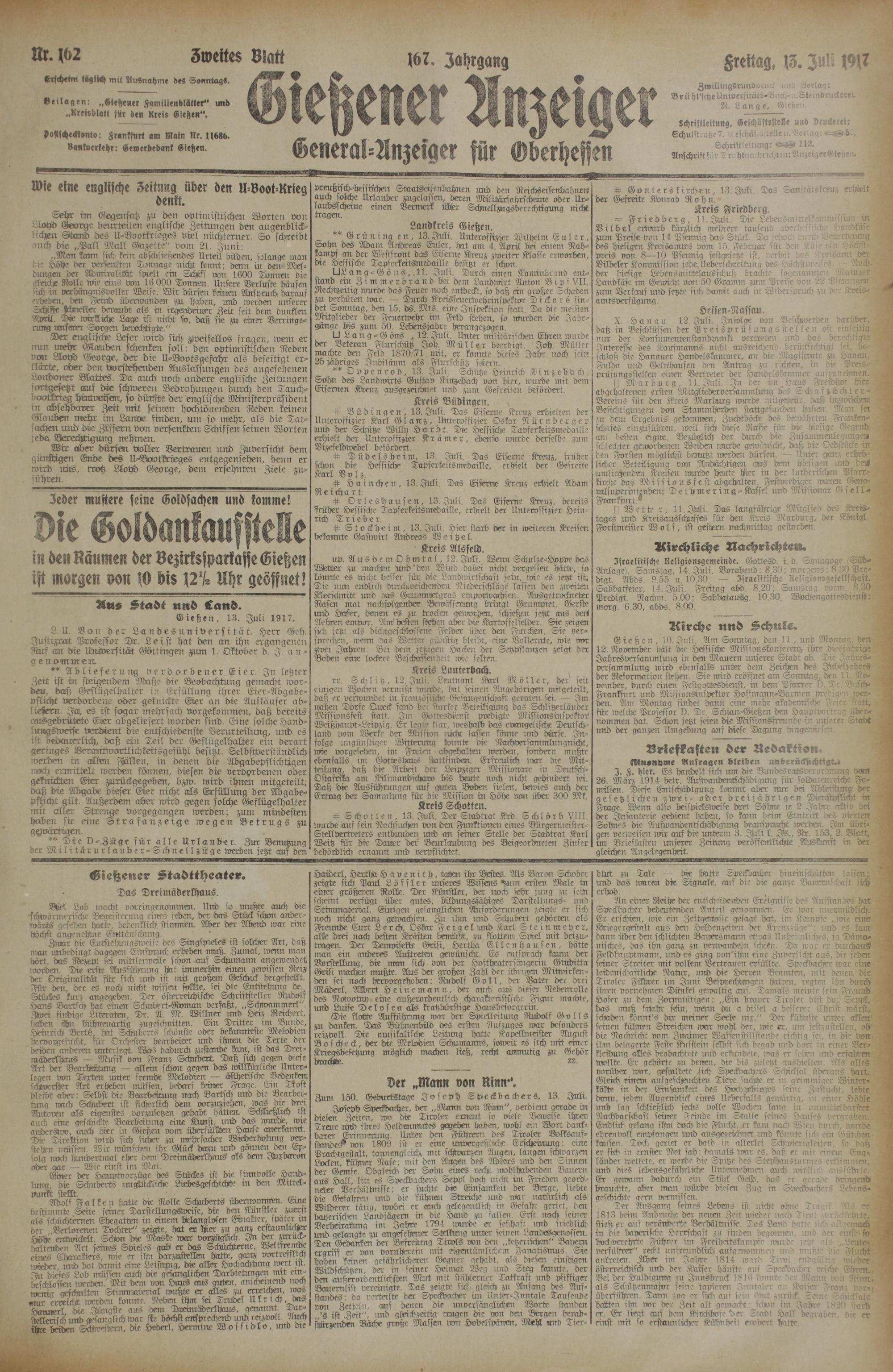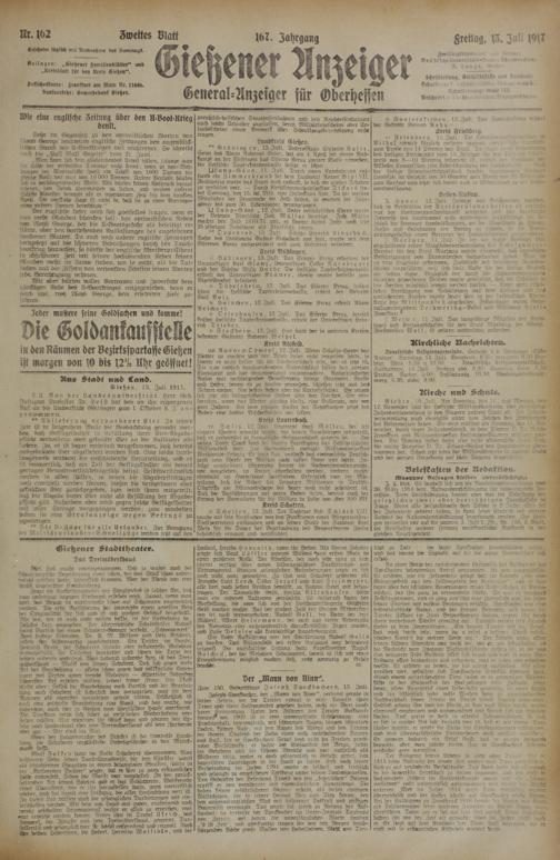 Regionale Zeitungen aus der Zeit des Ersten Weltkrieges