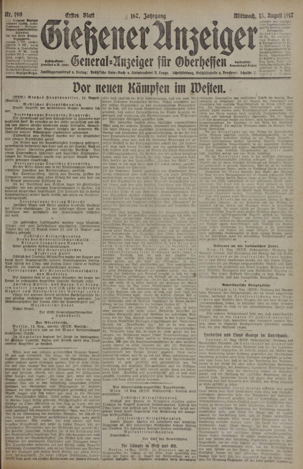 Regionale Zeitungen aus der Zeit des Ersten Weltkrieges
