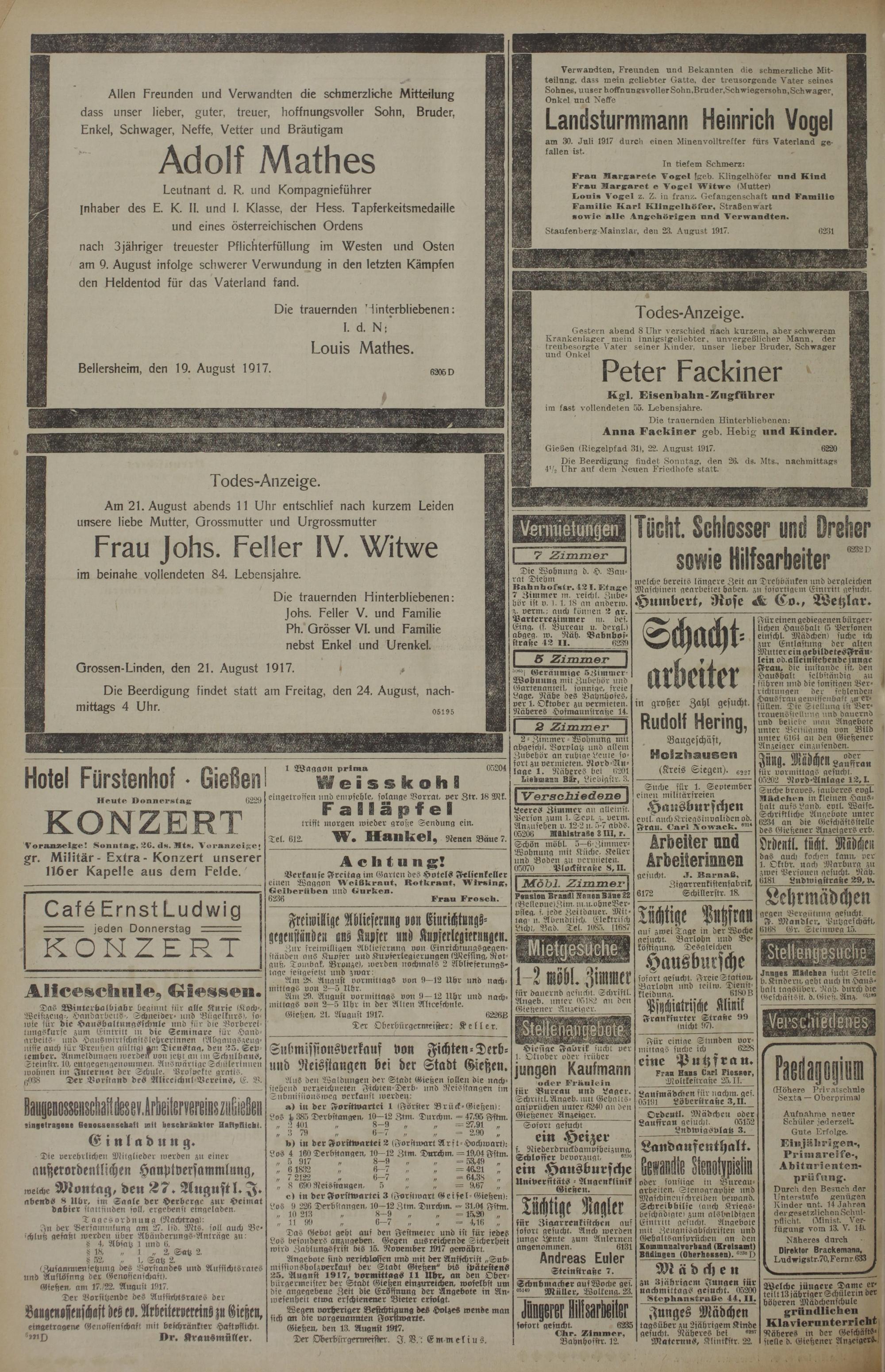 (23.8.1917) Erstes Blatt