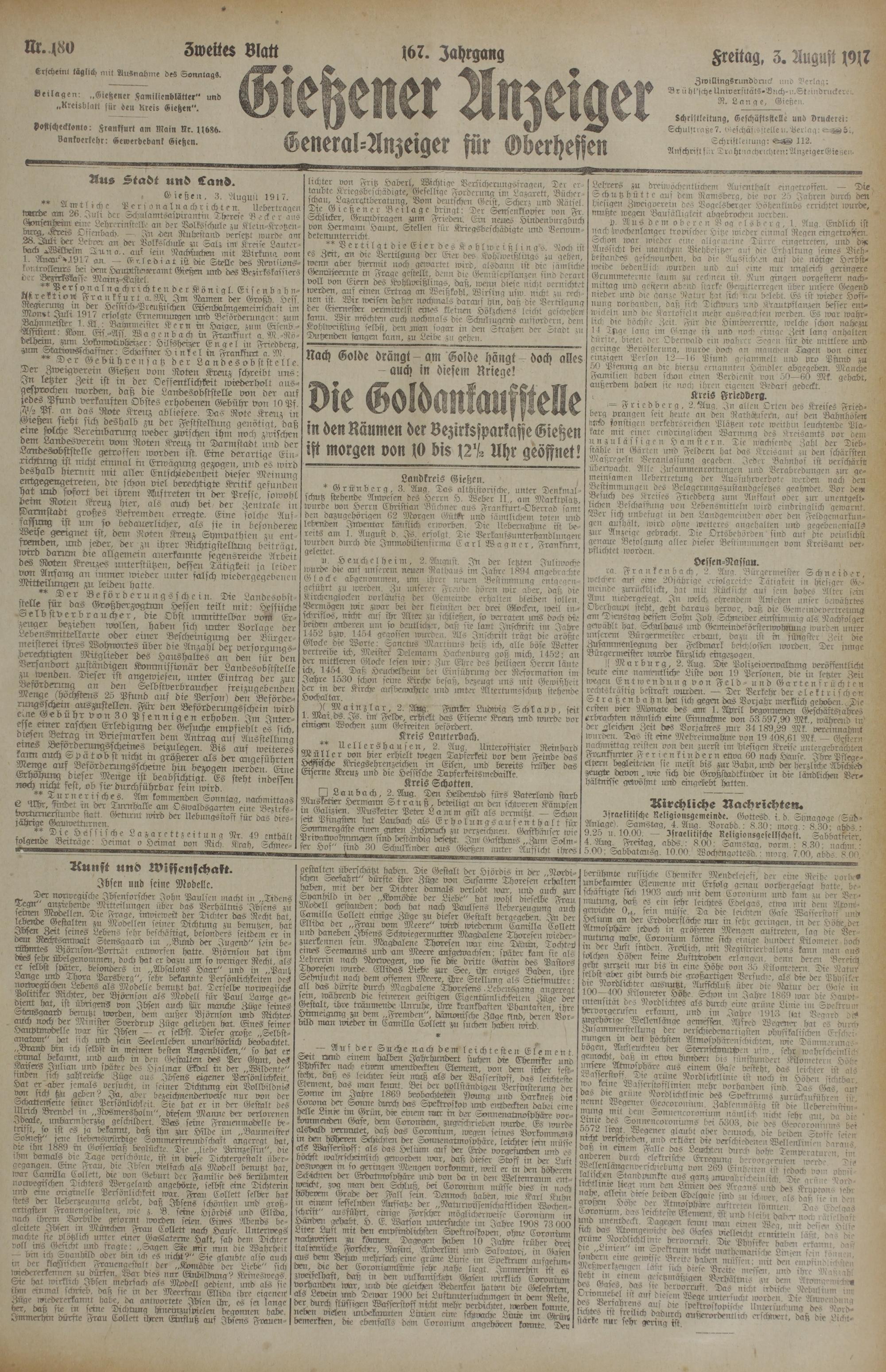 Gießener Anzeiger. 1868-1943