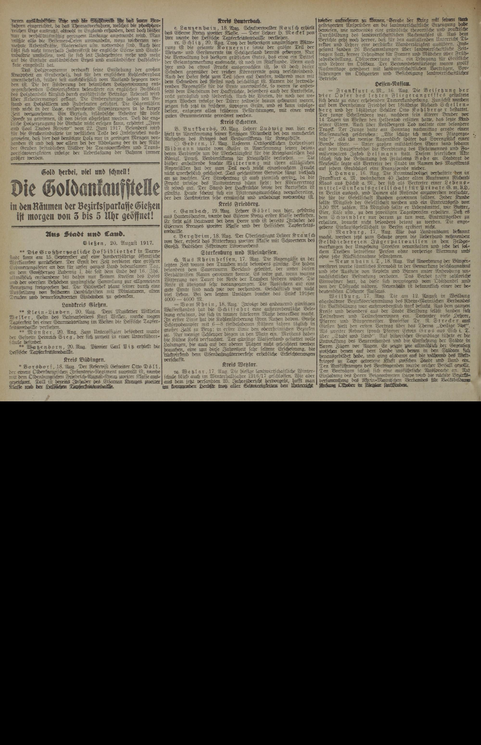 Regionale Zeitungen aus der Zeit des Ersten Weltkrieges