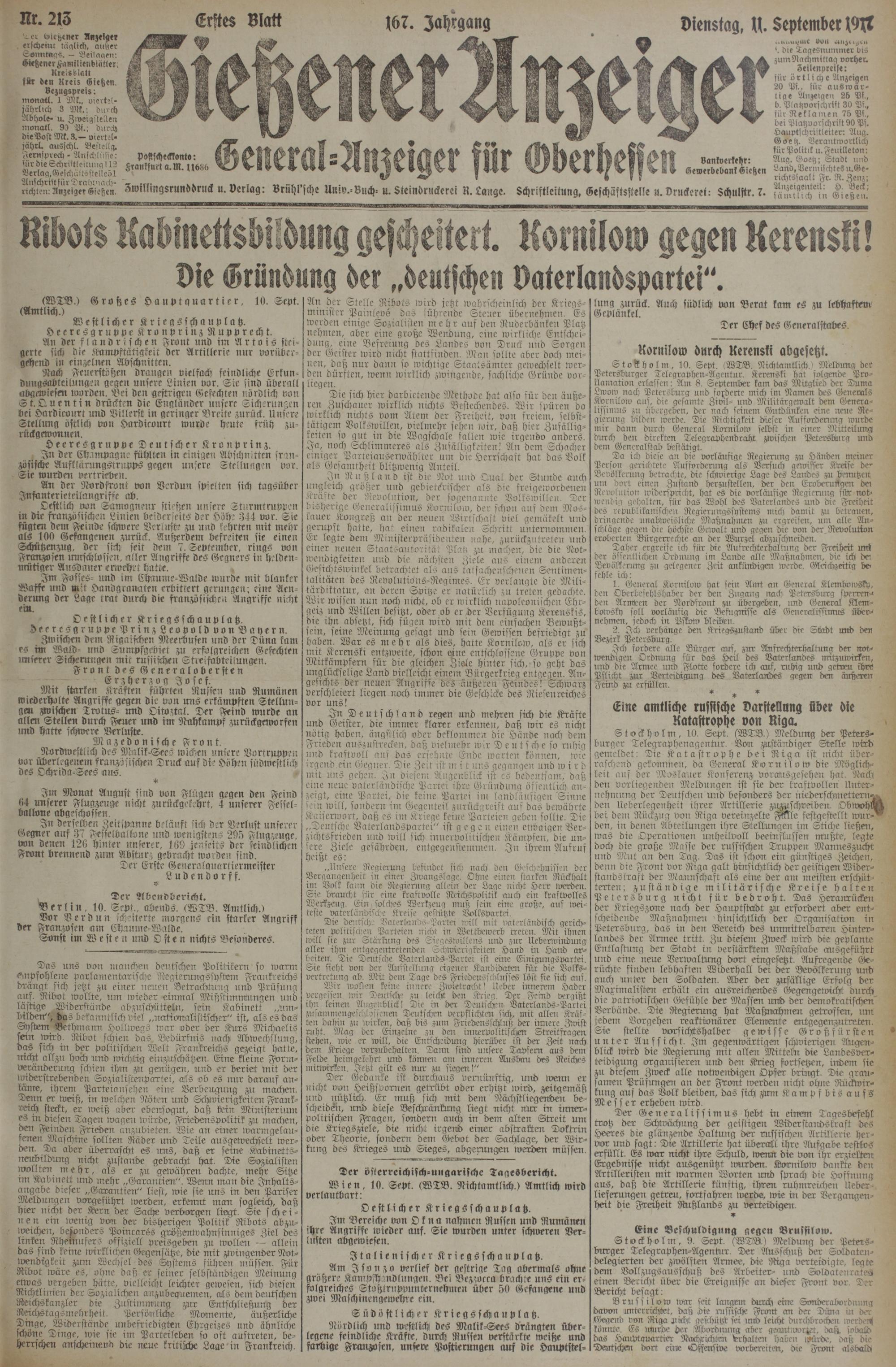 (11.9.1917) Erstes Blatt