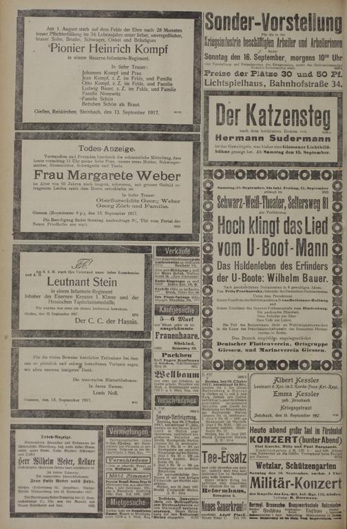Regionale Zeitungen aus der Zeit des Ersten Weltkrieges
