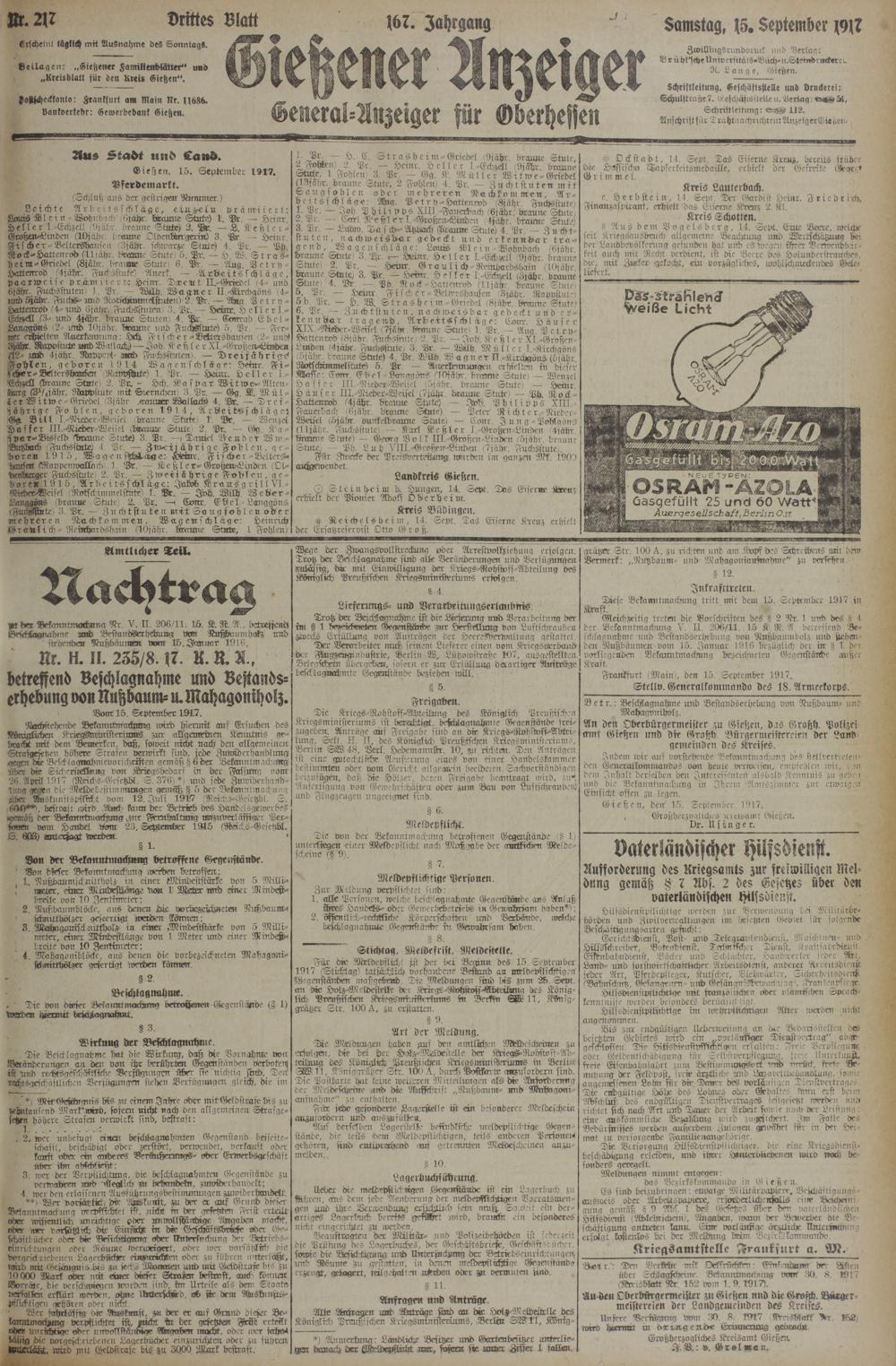 Regionale Zeitungen aus der Zeit des Ersten Weltkrieges