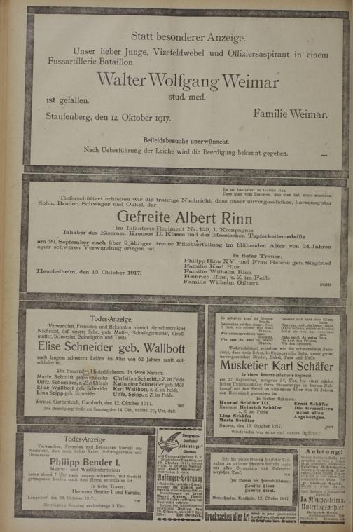 Regionale Zeitungen aus der Zeit des Ersten Weltkrieges
