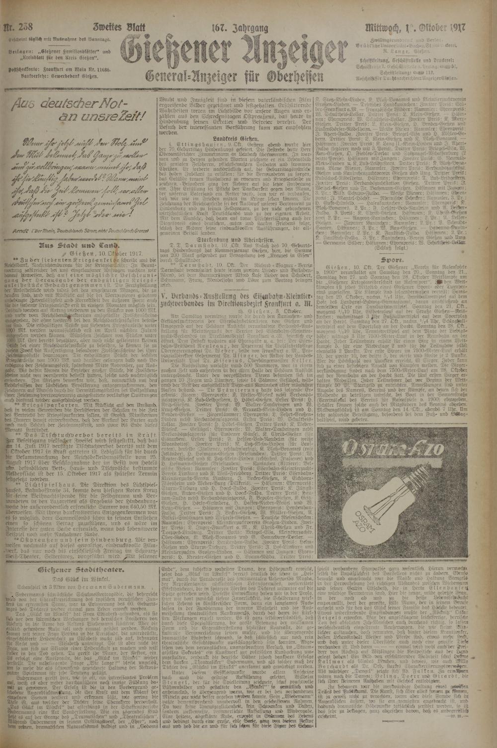Regionale Zeitungen aus der Zeit des Ersten Weltkrieges