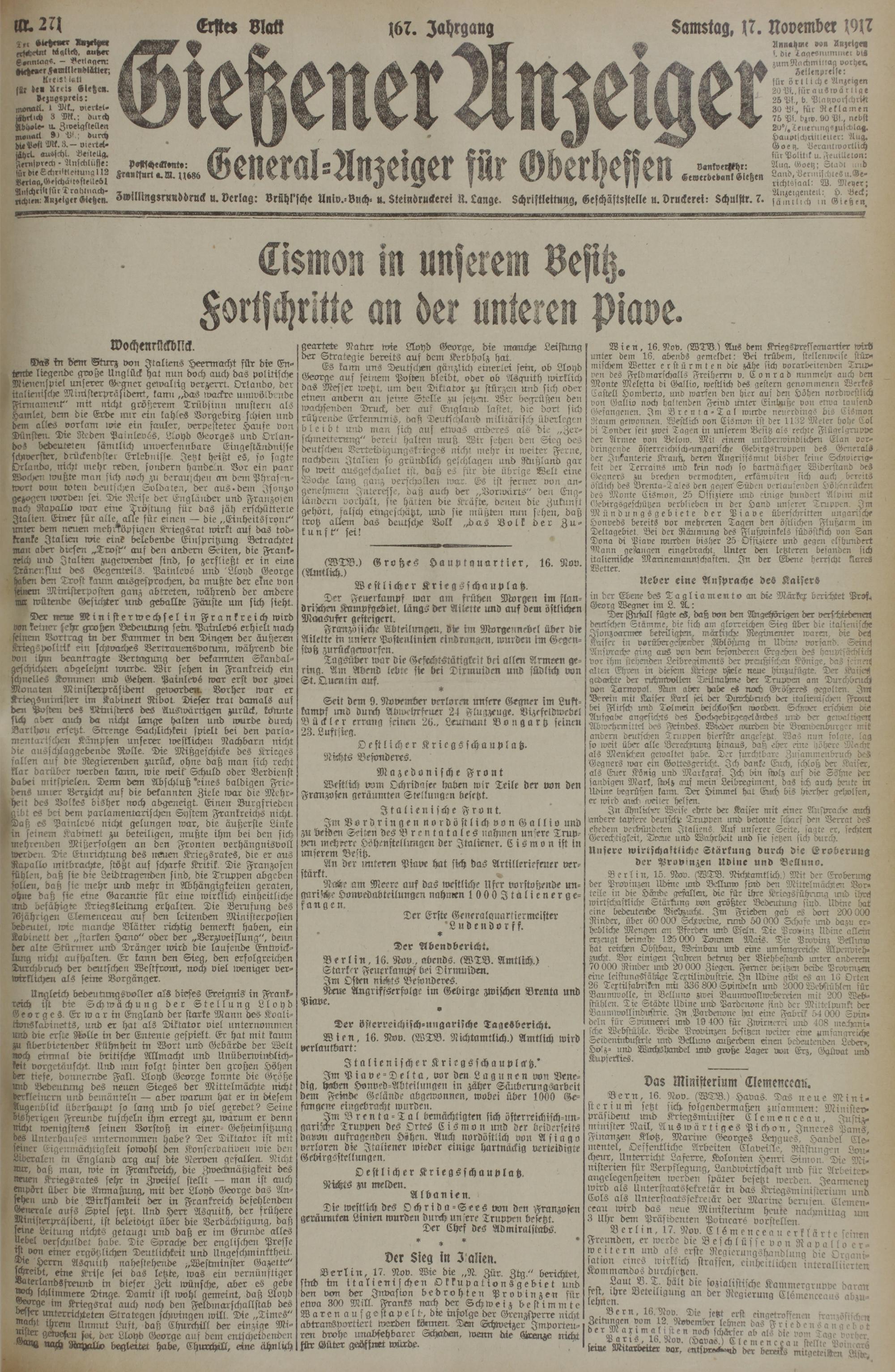 (17.11.1917) Erstes Blatt