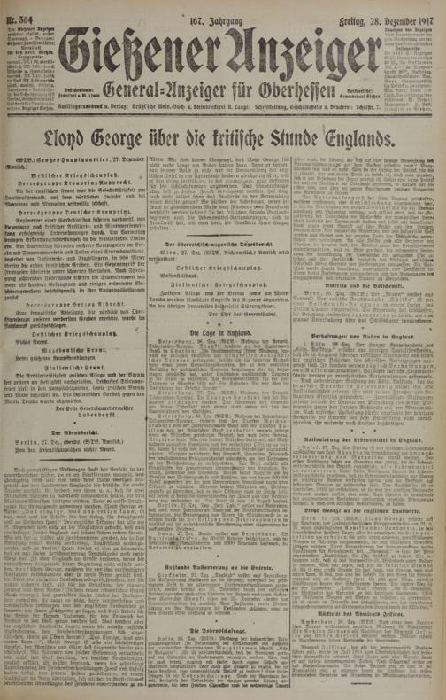 Regionale Zeitungen aus der Zeit des Ersten Weltkrieges
