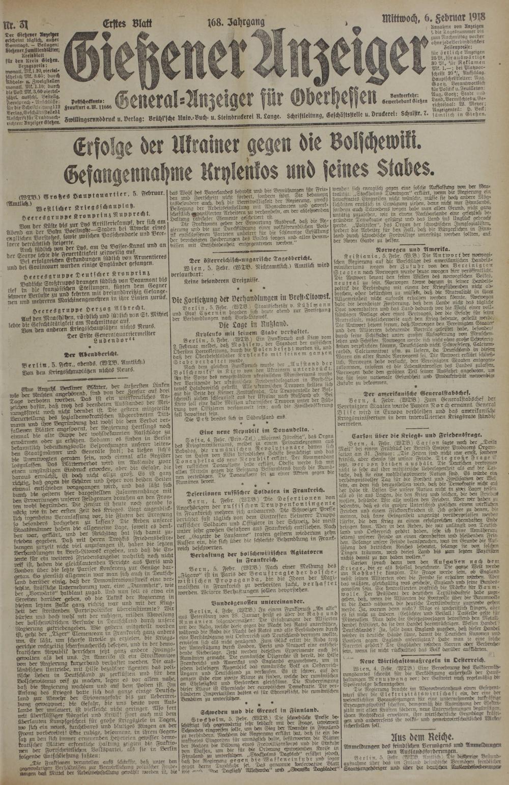 Regionale Zeitungen aus der Zeit des Ersten Weltkrieges