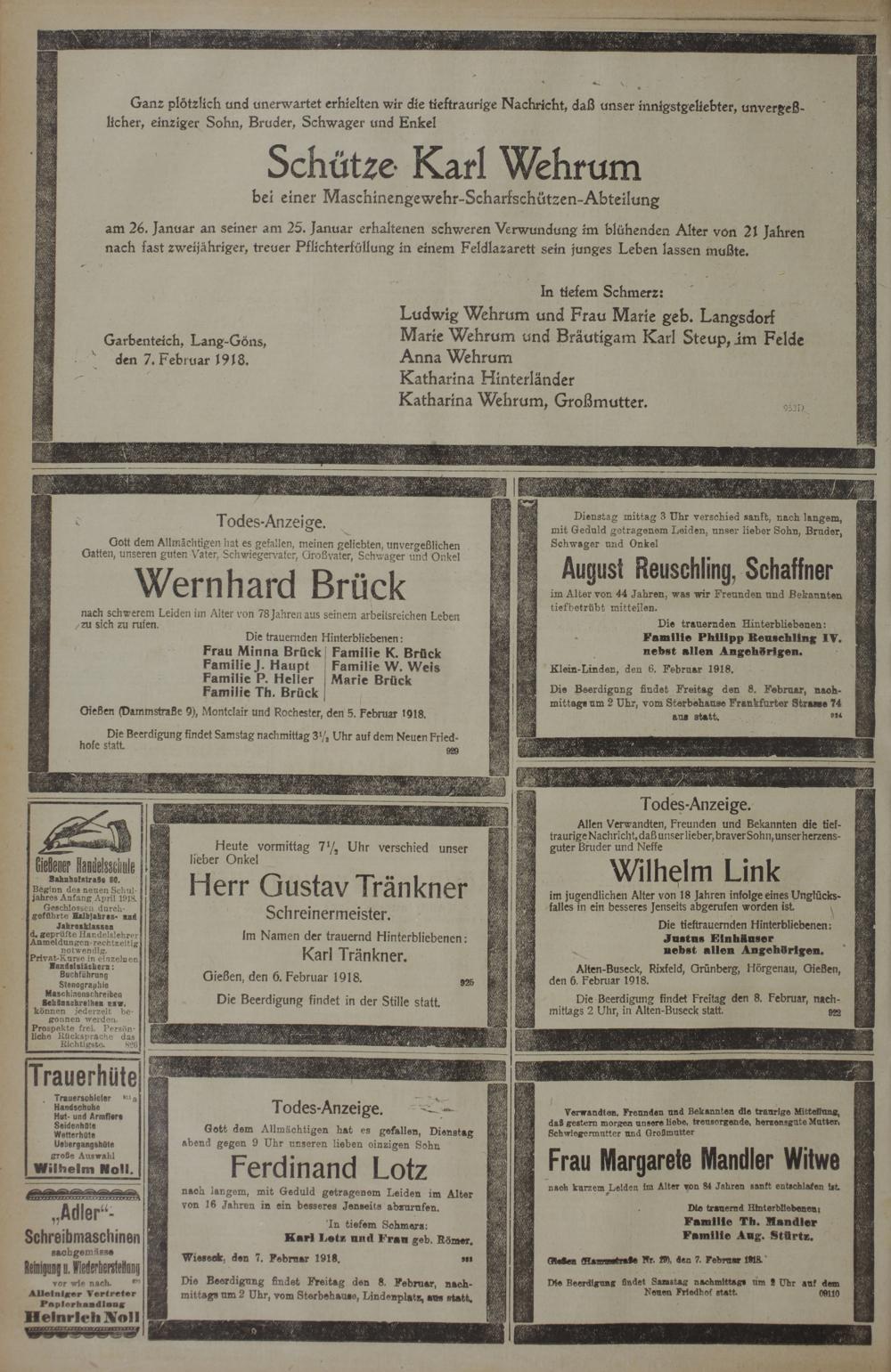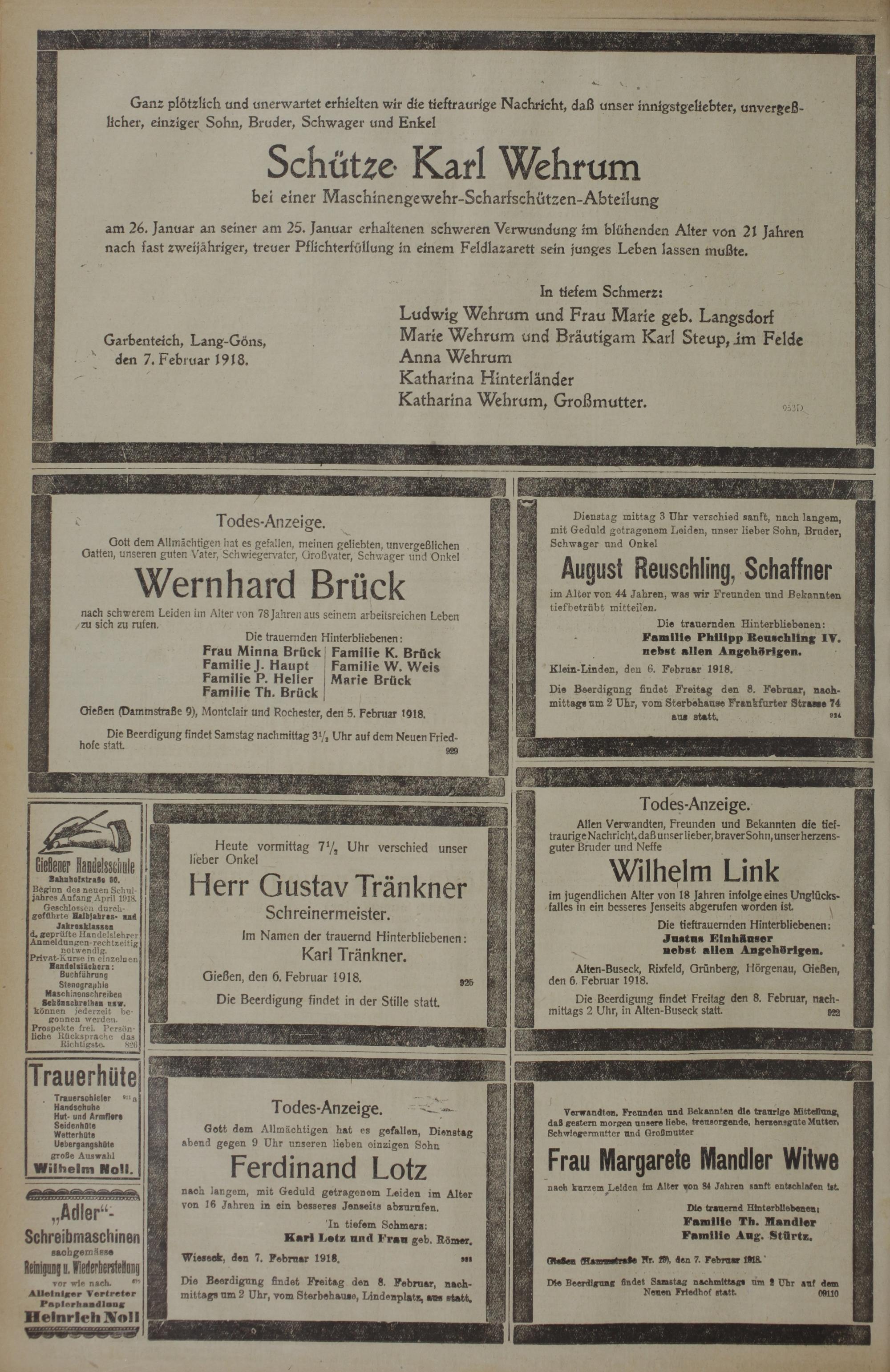 Regionale Zeitungen aus der Zeit des Ersten Weltkrieges