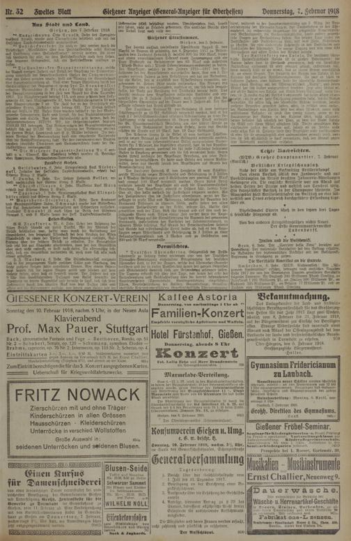 Regionale Zeitungen aus der Zeit des Ersten Weltkrieges