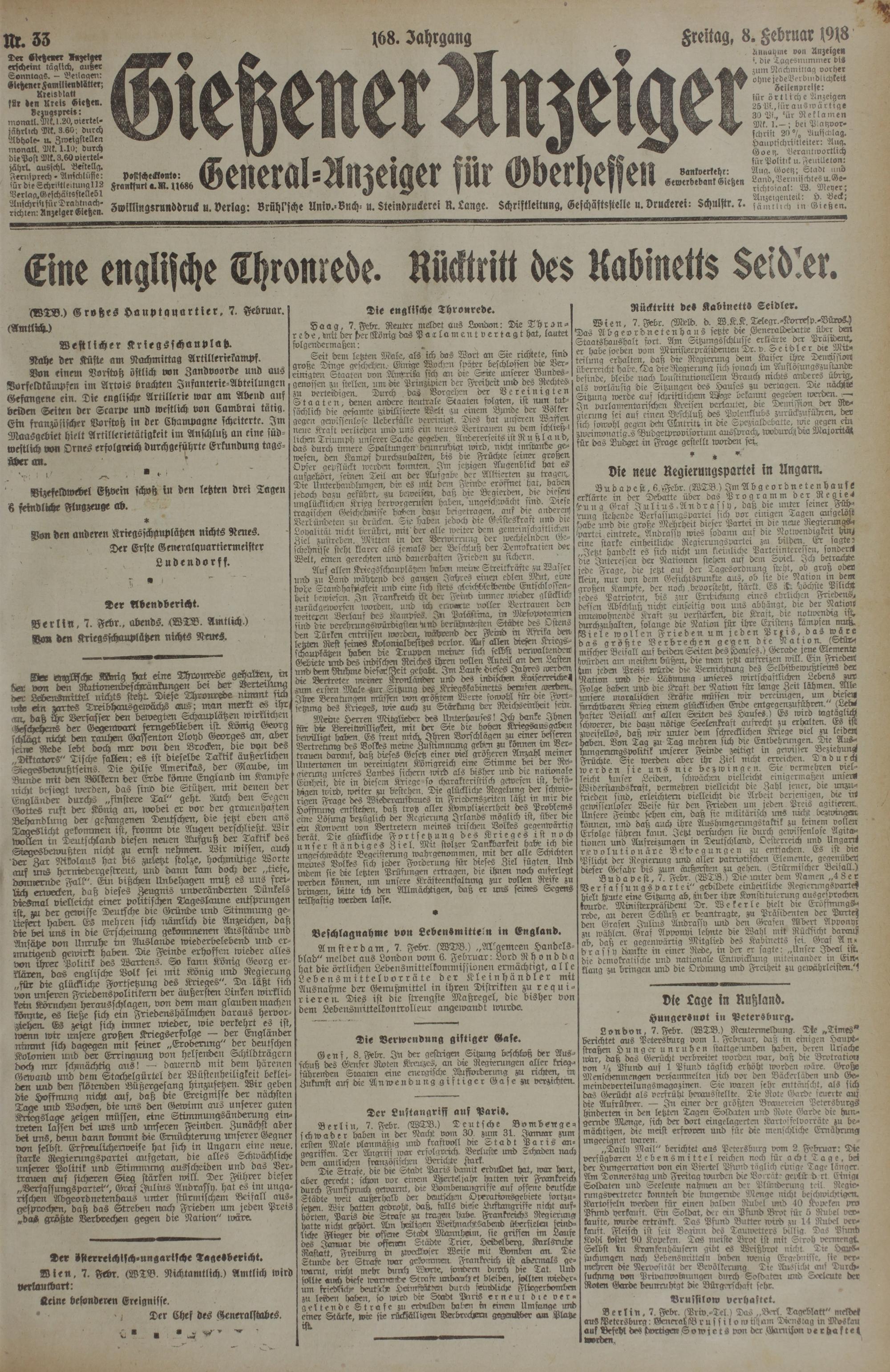 Gießener Anzeiger. 1868-1943