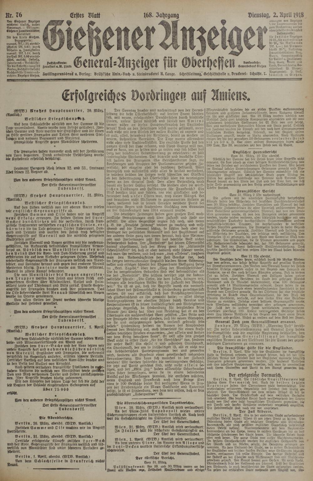 Gießener Anzeiger. 1868-1943