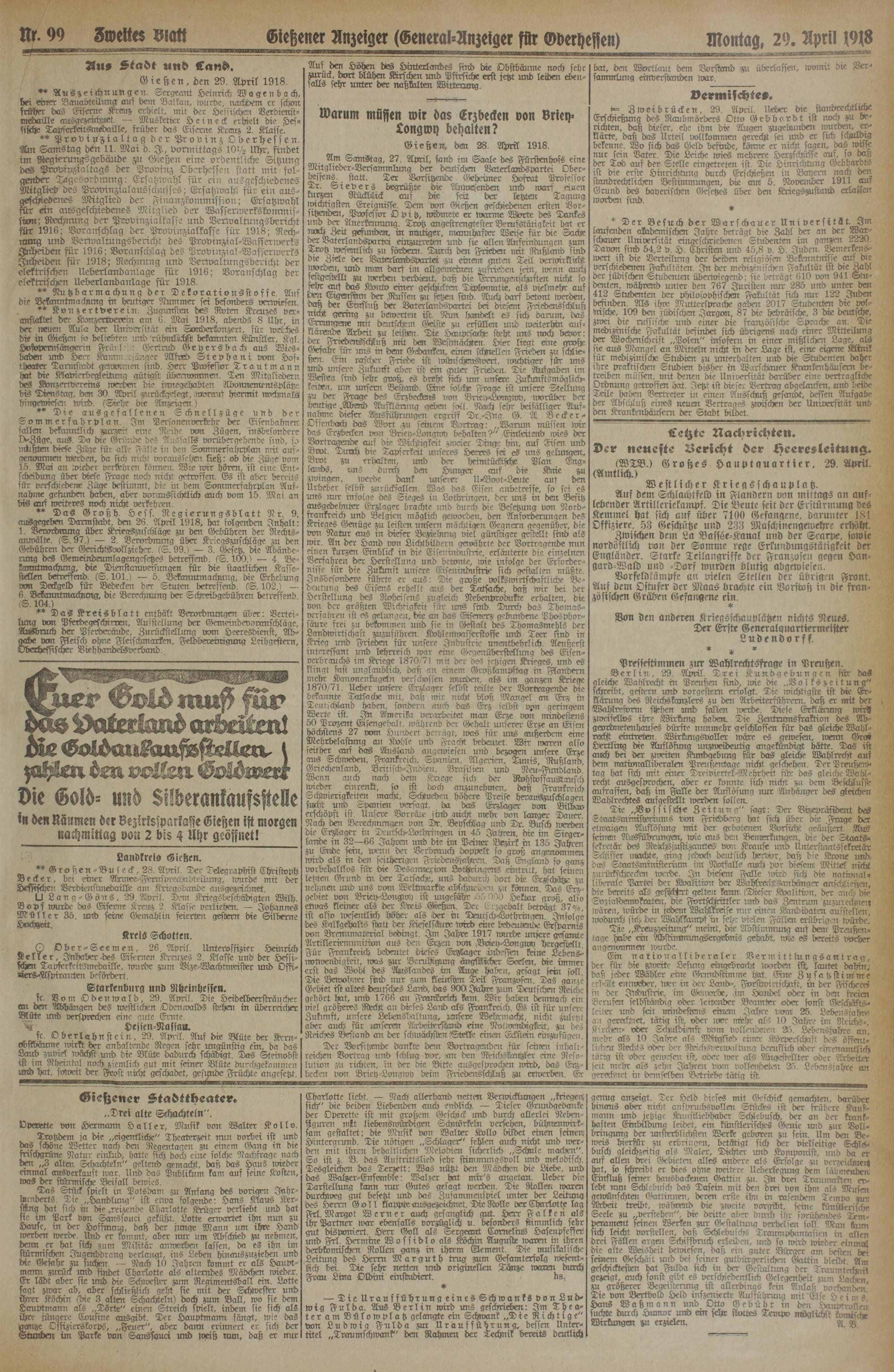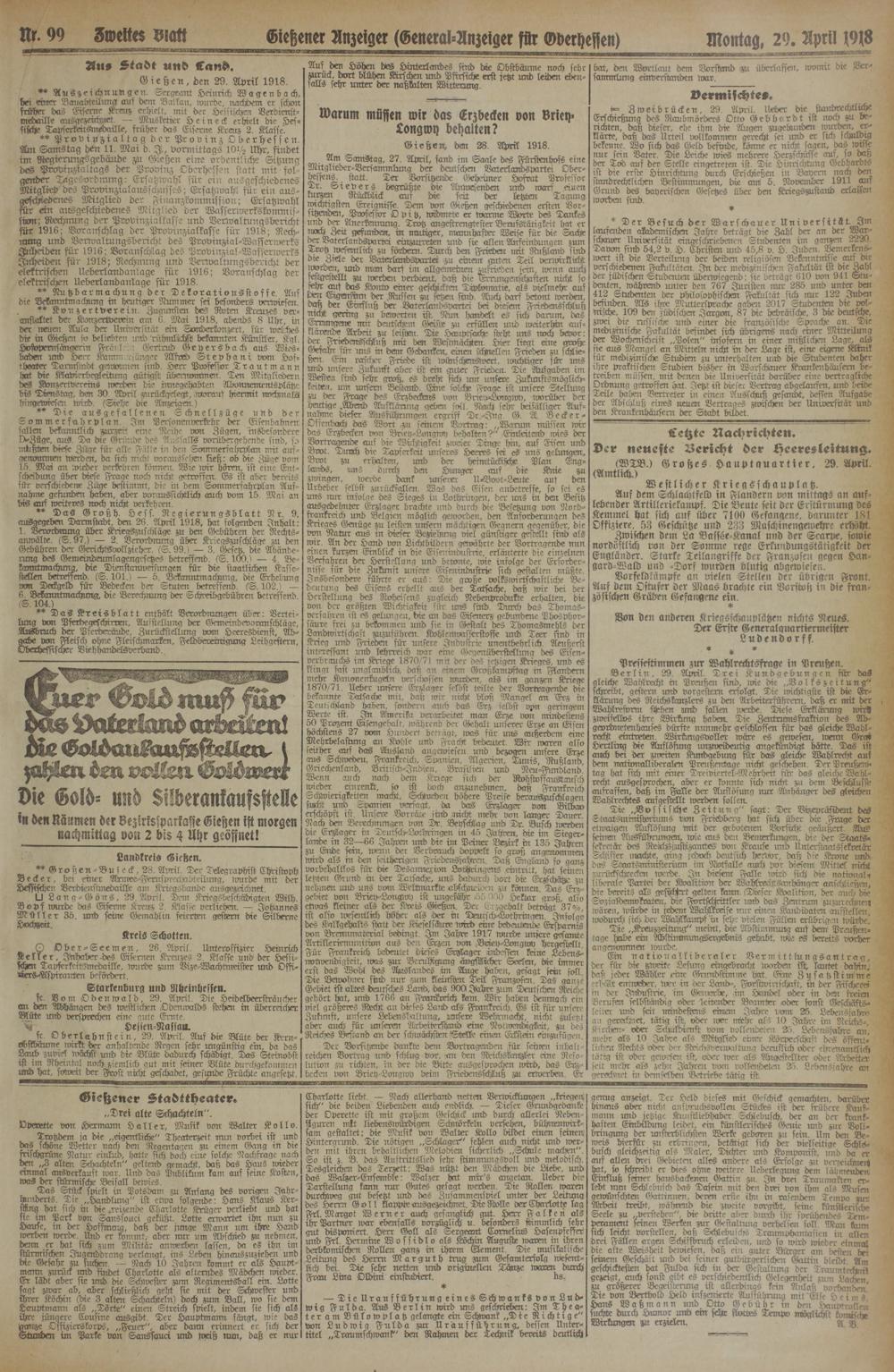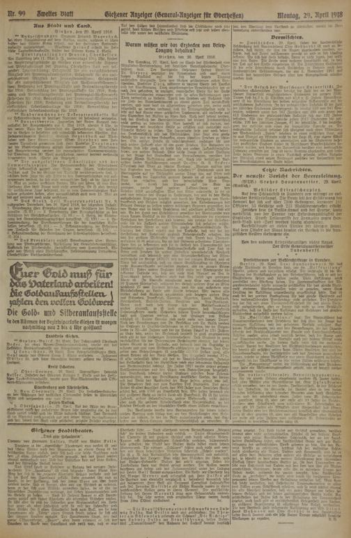 Regionale Zeitungen aus der Zeit des Ersten Weltkrieges