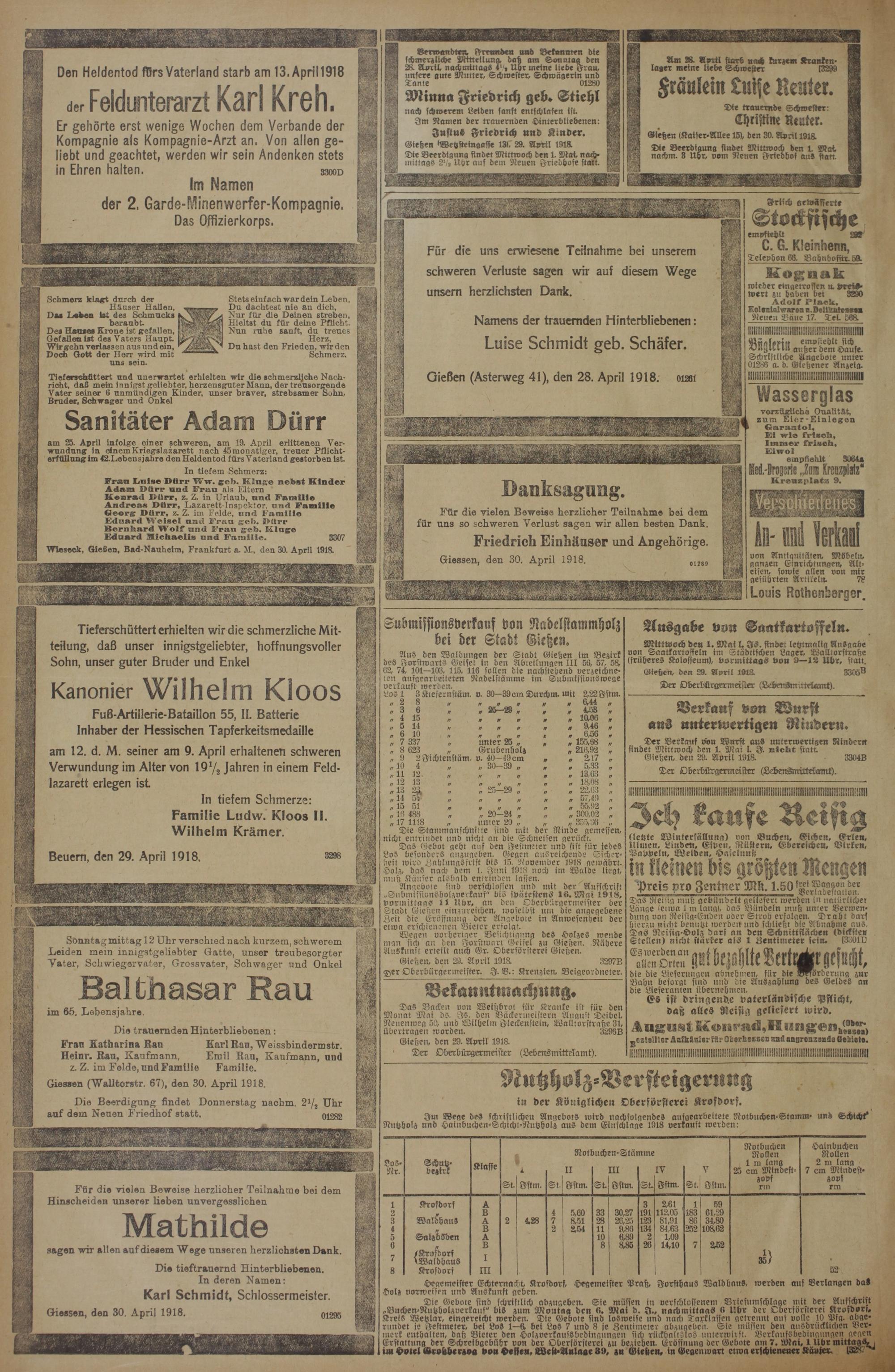 Regionale Zeitungen aus der Zeit des Ersten Weltkrieges