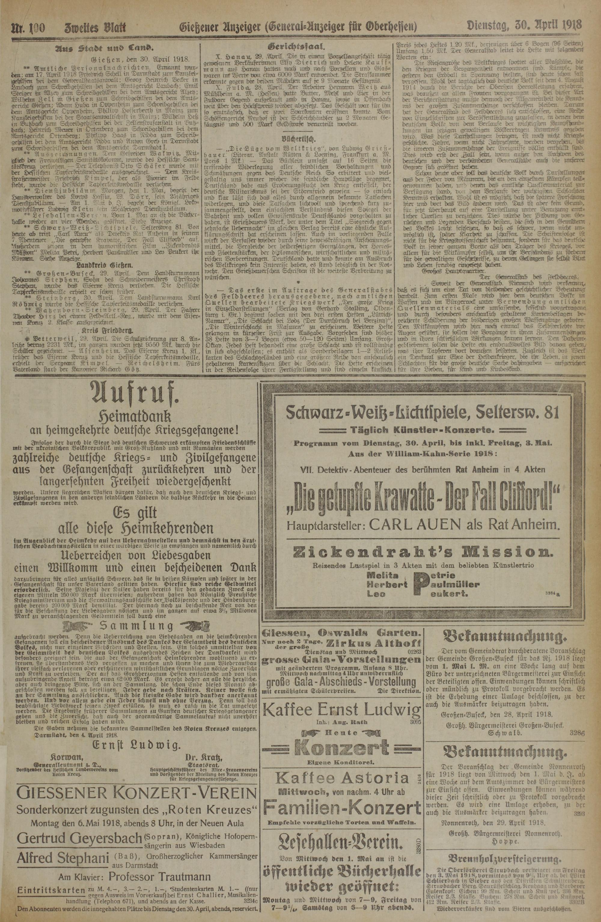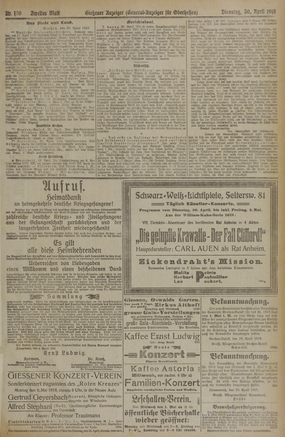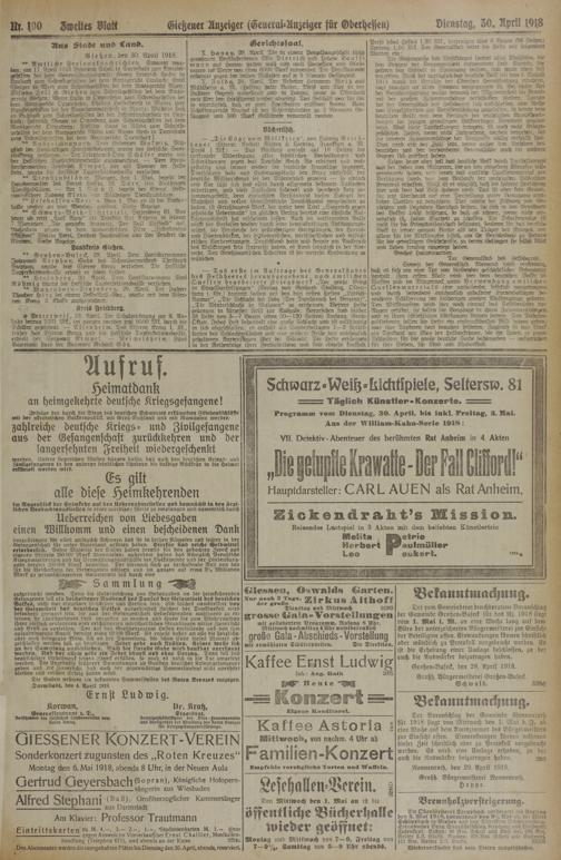 Regionale Zeitungen aus der Zeit des Ersten Weltkrieges