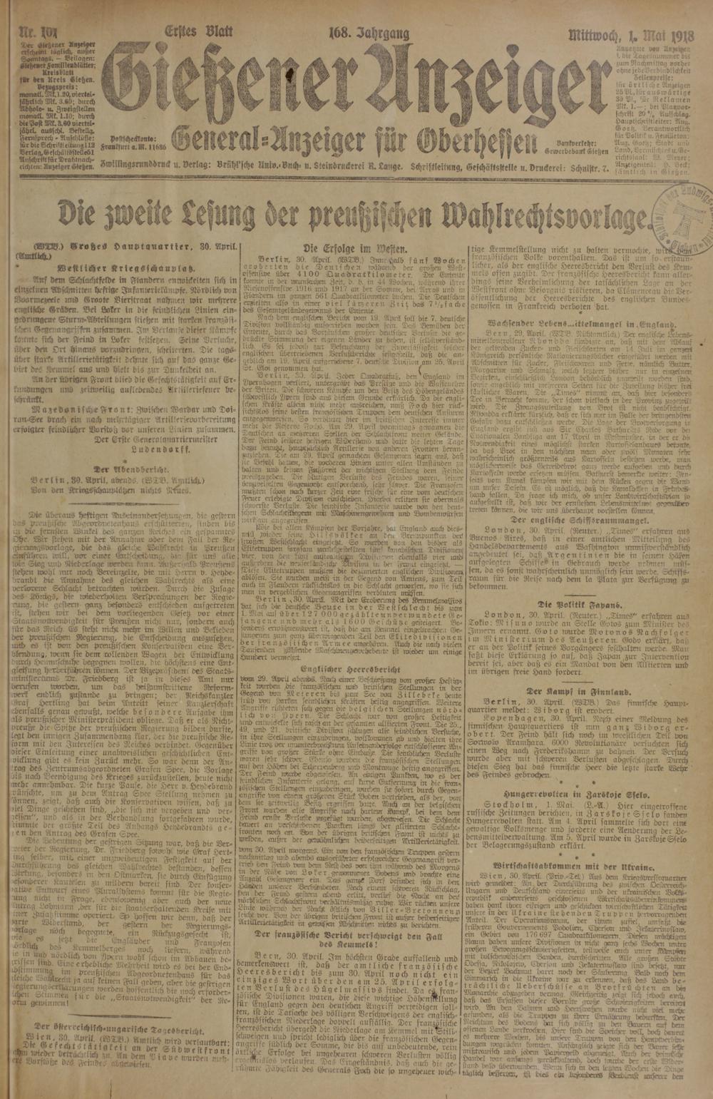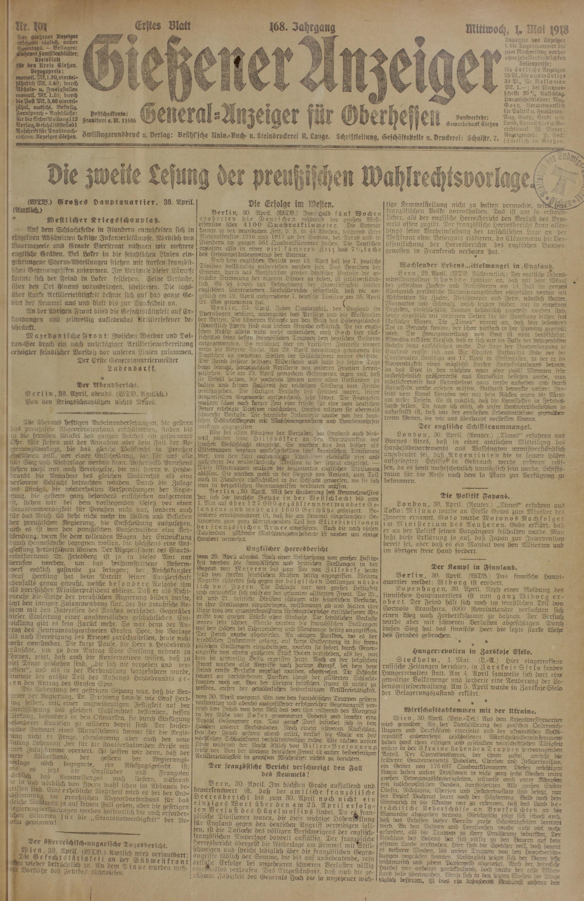 Regionale Zeitungen aus der Zeit des Ersten Weltkrieges
