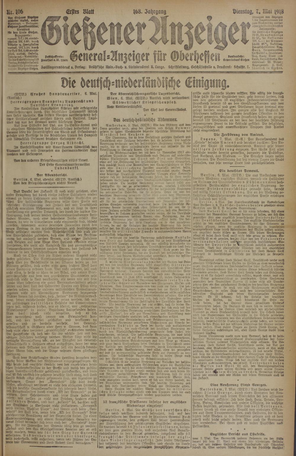 Gießener Anzeiger. 1868-1943
