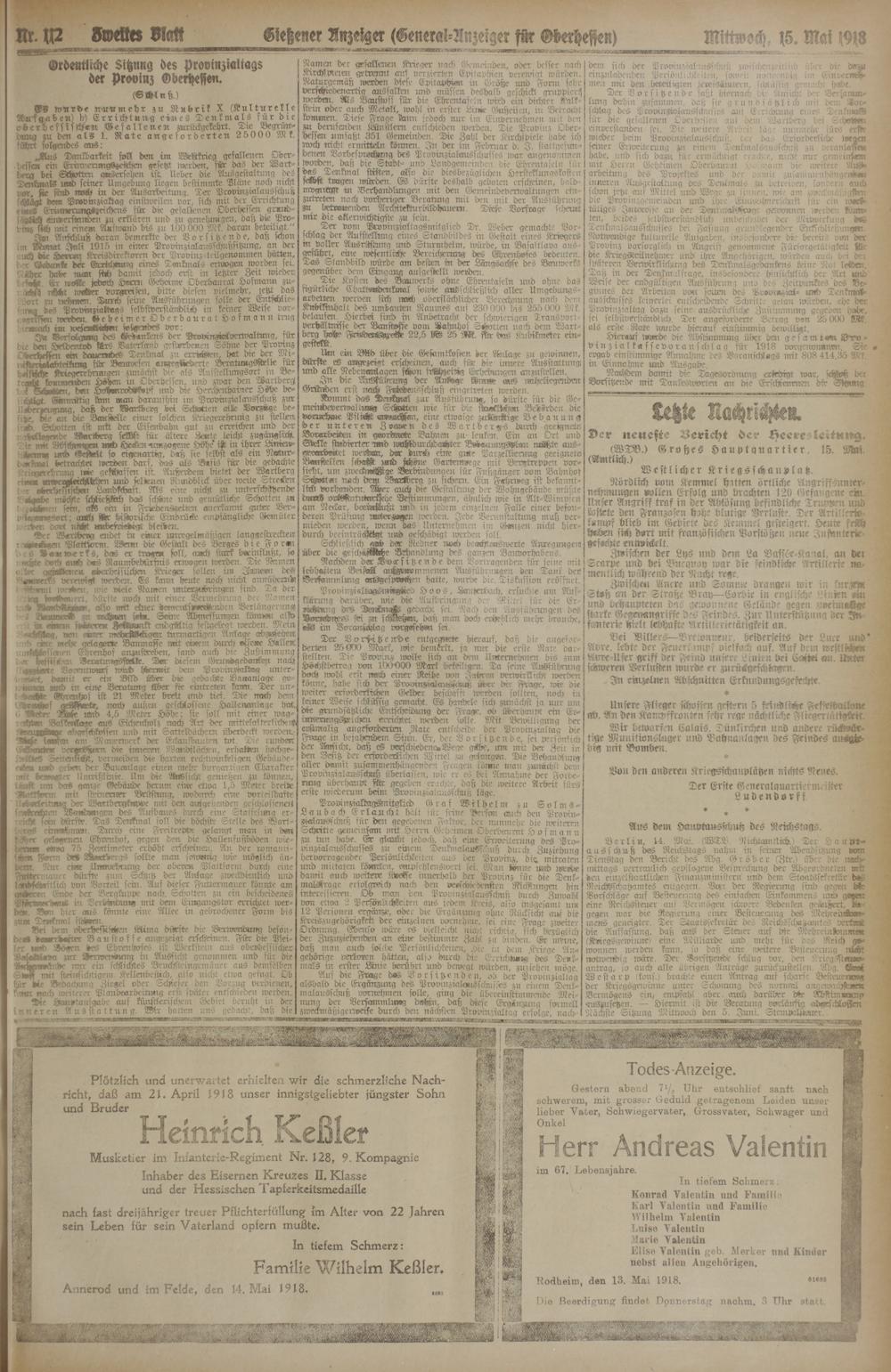 Regionale Zeitungen aus der Zeit des Ersten Weltkrieges