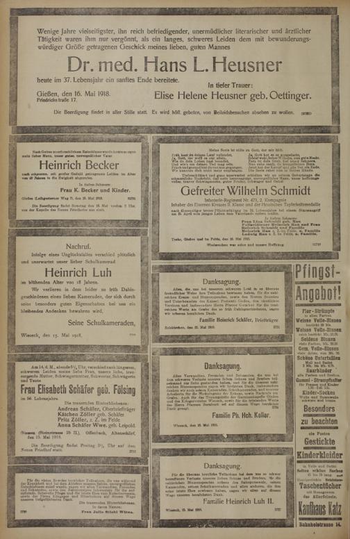 Regionale Zeitungen aus der Zeit des Ersten Weltkrieges