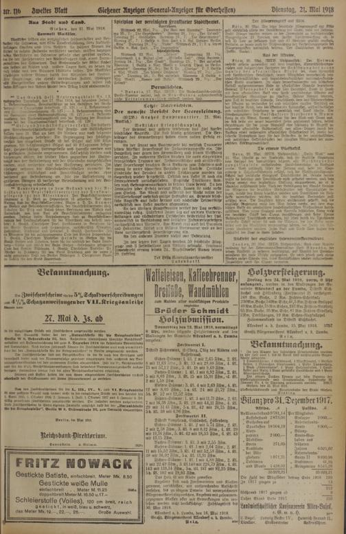 Regionale Zeitungen aus der Zeit des Ersten Weltkrieges