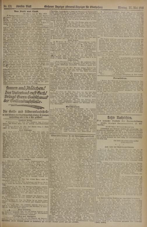 Regionale Zeitungen aus der Zeit des Ersten Weltkrieges