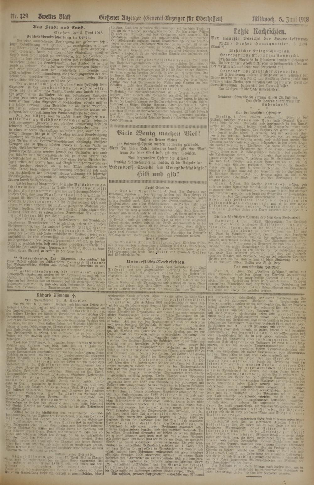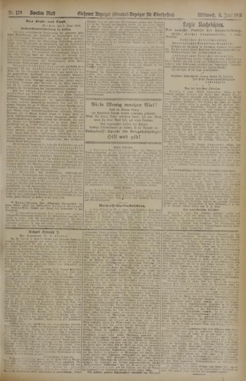 Regionale Zeitungen aus der Zeit des Ersten Weltkrieges