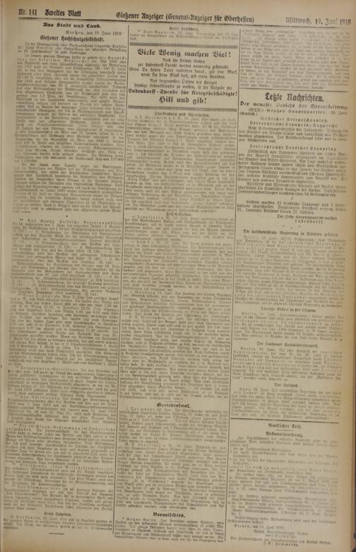 Regionale Zeitungen aus der Zeit des Ersten Weltkrieges