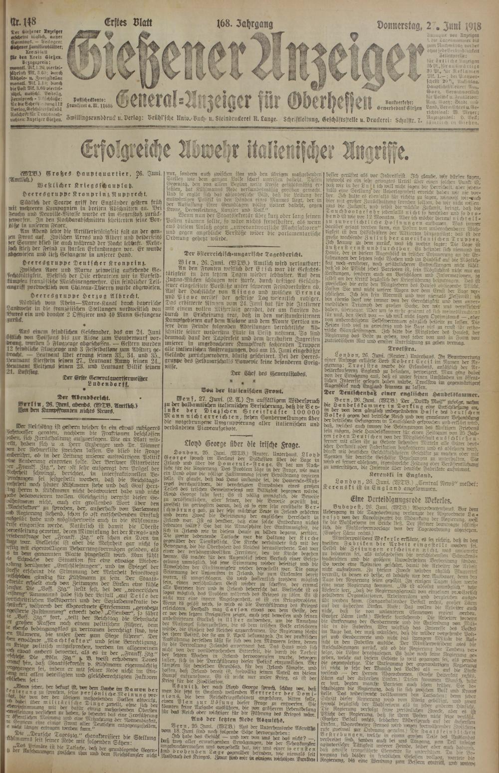 Gießener Anzeiger. 1868-1943