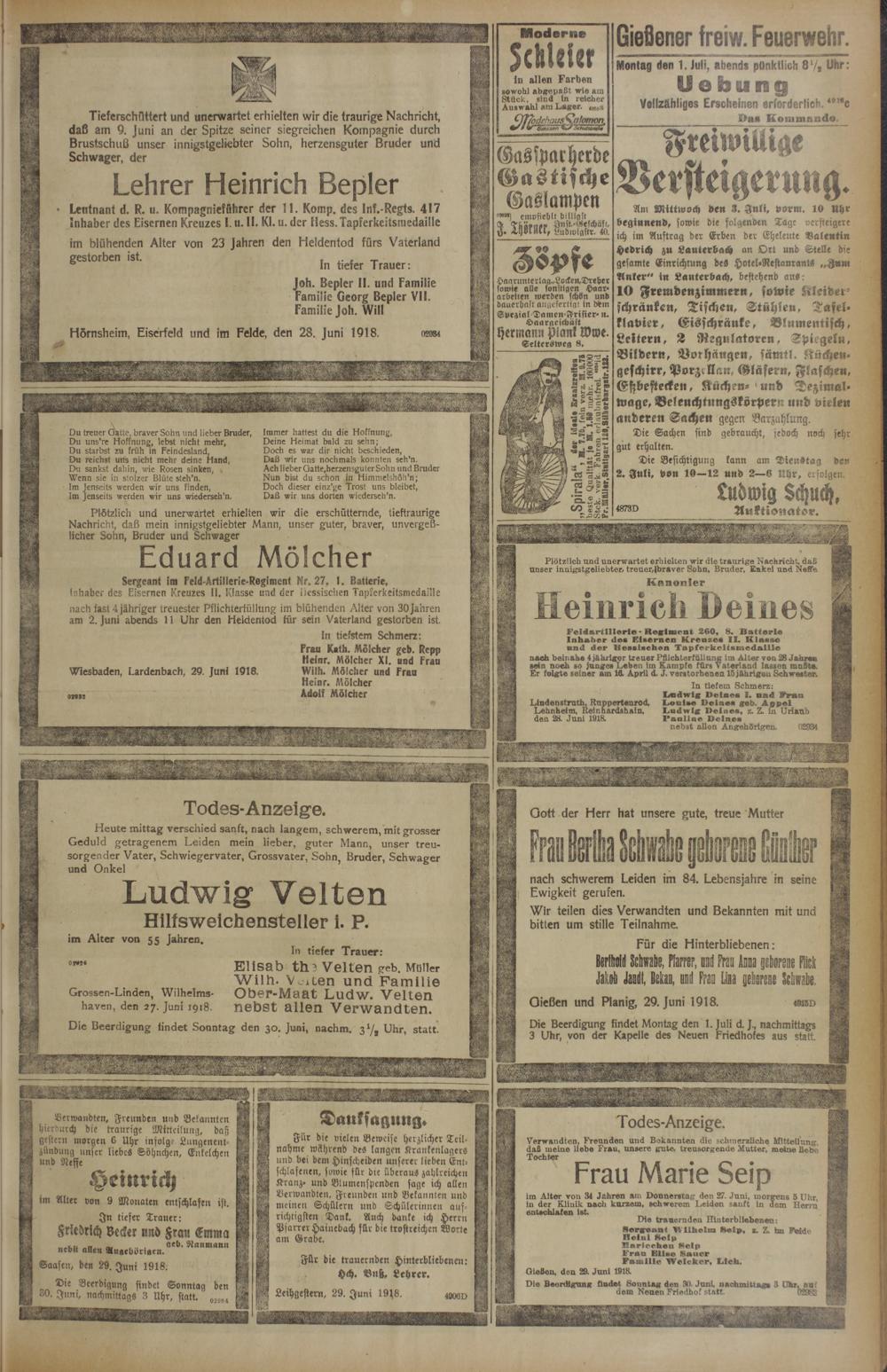 Regionale Zeitungen aus der Zeit des Ersten Weltkrieges